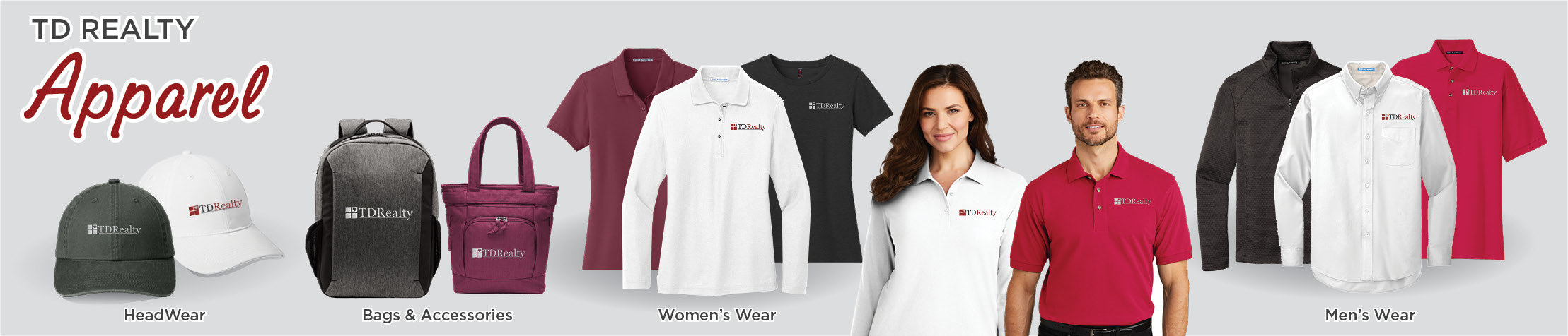 BestPrintBuy supplies a complete range of products for TDRealty real estate promotions. Contact us for more information about our real estate marketing products, including business cards, promotional gifts and TDRealty real estate apparel.