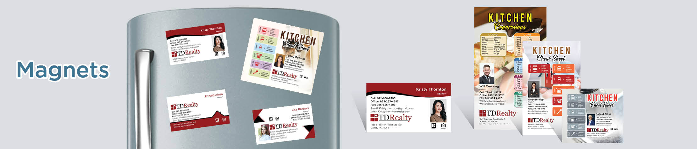 Give your realty clients an appreciation gift they will use nearly every day for an entire year with our beautiful TDRealty magnets. They are useful to your clients, cost-effective for you, and keep your contact information front and center all year long! Forget about newspaper ads (your clients will), radio spots (they are gone in 30 seconds), TV ads (which cost a mint), and billboard ads (those are just "in-your-face" tacky, aren't they?)