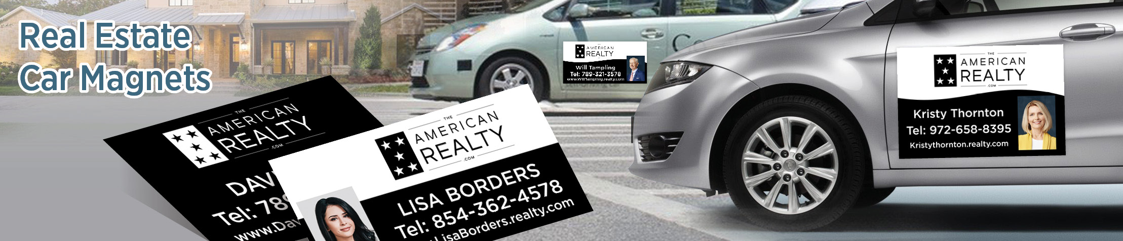 Car magnets are a versatile solution for real estate professionals who want to increase their visibility and name recognition. All of our magnets are printed on a durable 30 mil magnet stock, with gloss coating on the front to ensure readability. Available with or without photos, and in a 12 by 18 or 12 by 24 inch size, these real estate car magnets are a great way to promote individual agents or an entire office. With our easy ordering process, you can have an official The American Realty branded car magnet complete with your name, contact information, and even photo, at your doorstep in just a few days!
