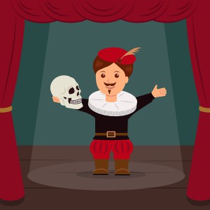 Actor on scene of the theater, playing a role Hamlet. Concept World Theatre Day.