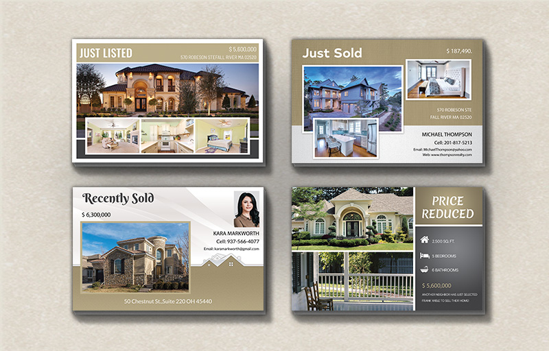 Need postcards for your next direct mail campaign? We have over fifty categories of branded designs for our Century 21 real estate agents to use! Our Centrury 21 realtor postcards are printed on heavy 130 pound stock paper with a high-quality UV coating. (None of the flimsy stuff for our clients!) Select from standard size (4.5” x 5.5”) or make a bigger splash with our jumbo (5.5” x 8.5”) postcards. Craft your own custom card in minutes using our online design center’s vast library of custom templates and graphics with your own images and text.
