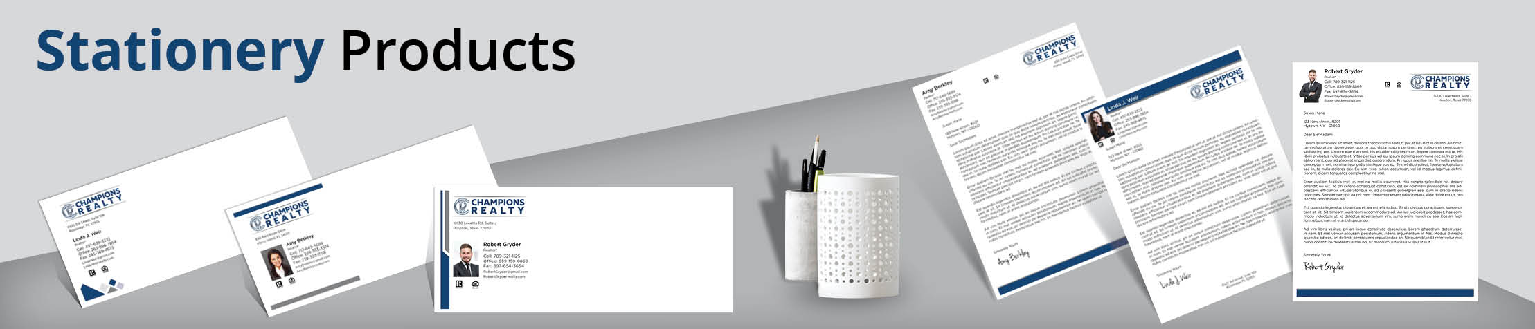 You’ll go to the head of the class with our real estate stationery! Use personalized letterhead and envelopes to present your Champions Realty real estate credentials in a classy, yet unassuming way to everyone you do business with. Order your supply of personalized real estate business stationery today, so you can start using it next week.