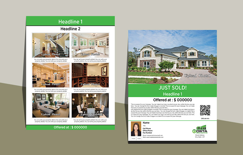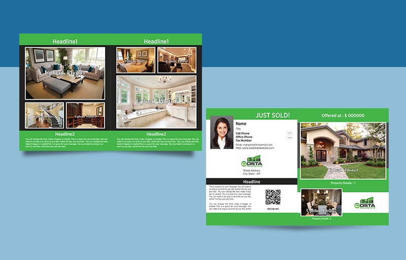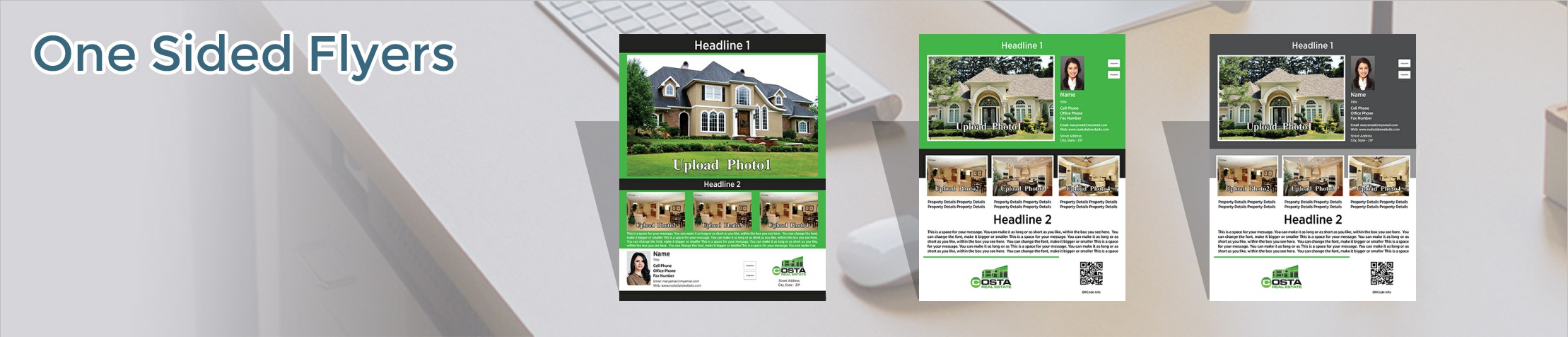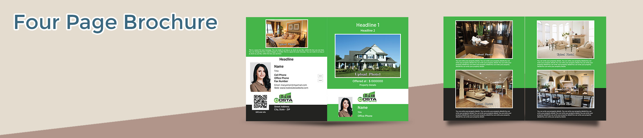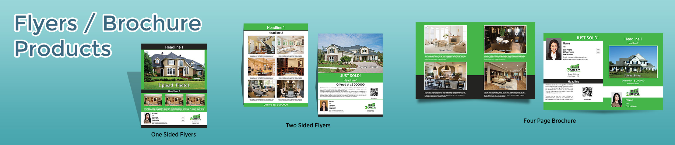 Nothing looks quite so polished as a full-color real estate flyer of your latest listing when you offer it to potential buyers. Every seller will appreciate seeing their own listing featured on a one-sided flyer, a two-sided flyer, or a big, beautiful four-page brochure!