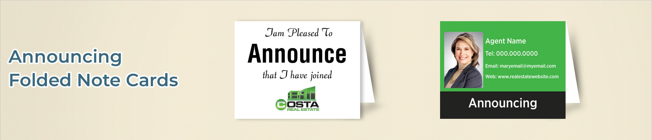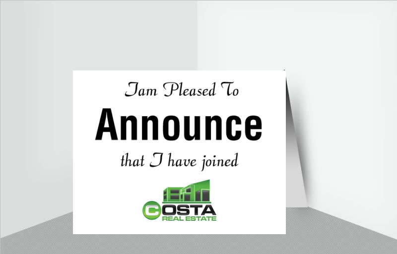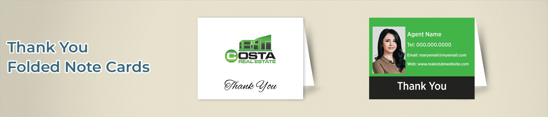Your mother had it right -- saying “Thank You” really makes a difference. With our Costa Real Estate International branded, folded note cards, it’s easy to say Thank you: Thank you for the listing, thank you for closing, thank you for the referral, thank you for the invitation to speak and many other opportunities that appear in your daily travels. Note cards are also great for personal promotion, announcements and jotting a quick hand-written note to a potential, existing or past client.