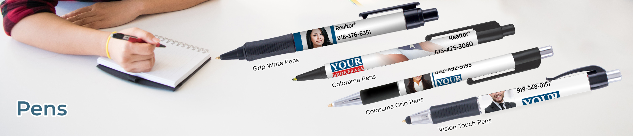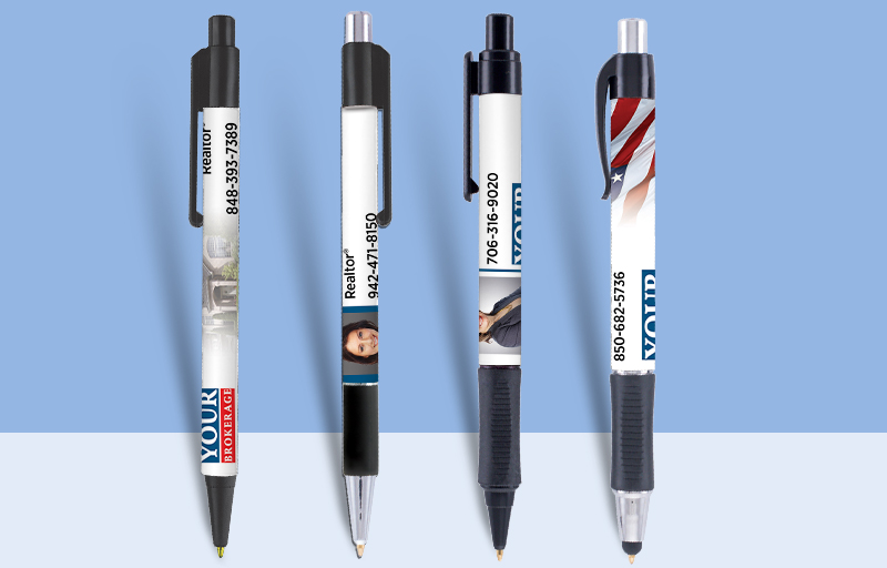 - ■ Custom pens present your contact info in a bold, easy-to-read manner