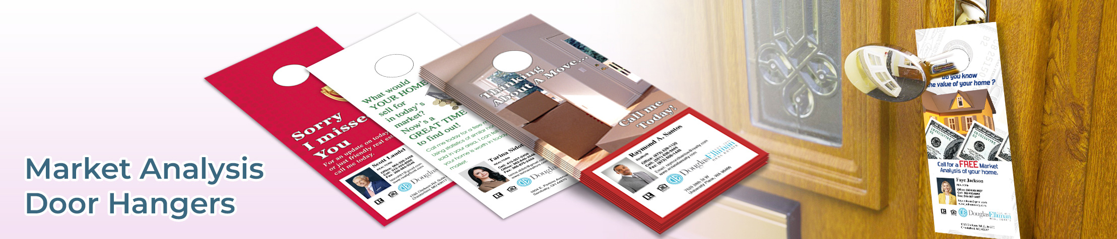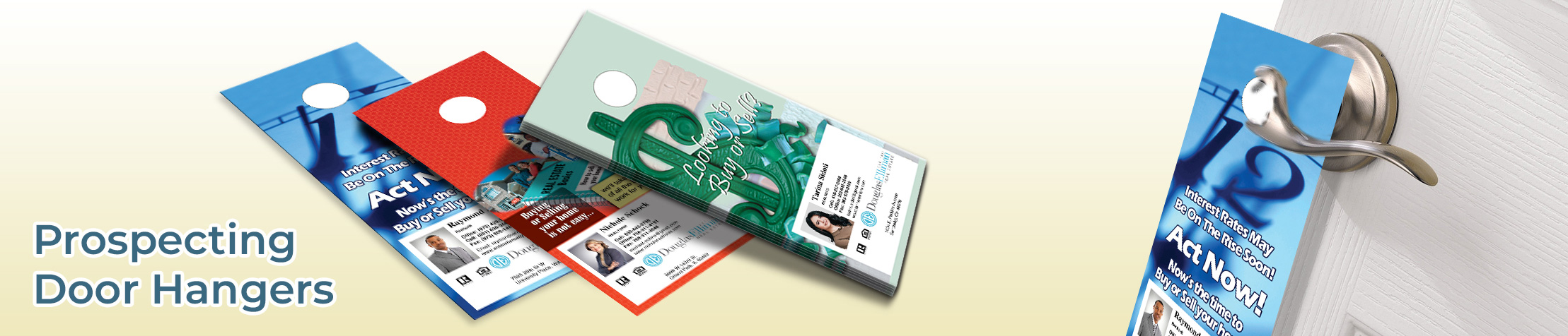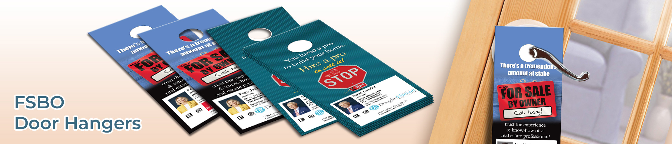 Old-school house calls! Use our real estate door hangers to introduce your realty services to prospects in your territory. We have door hangers for specific events, like open houses and for the holidays. Professionally printed, these eye-catching real estate door hangers get noticed! Add our door hangers to your next real estate marketing campaign. And it’s easy to customize them with photos and text in our design center. Our door hangers for real estate professionals are budget-friendly and full-color, with a trim size of 4.25 x 11 inches and a bleed size of 4.5 x 11.25 inches. Order your real estate door hangers today, and you’ll have them by next week!