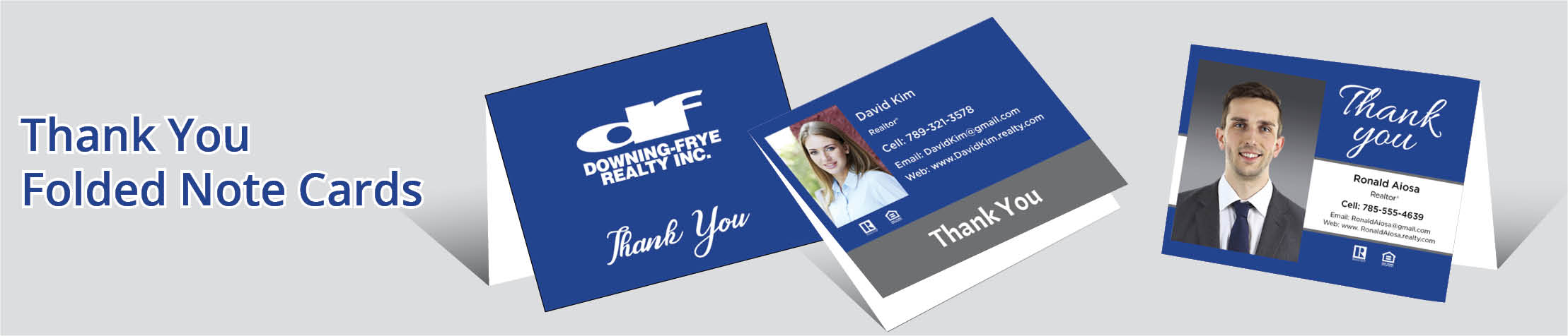 Your mother had it right -- saying “Thank You” really makes a difference. With our Downing Frye Realty International branded, folded note cards, it’s easy to say Thank you: Thank you for the listing, thank you for closing, thank you for the referral, thank you for the invitation to speak and many other opportunities that appear in your daily travels. Note cards are also great for personal promotion, announcements and jotting a quick hand-written note to a potential, existing or past client.