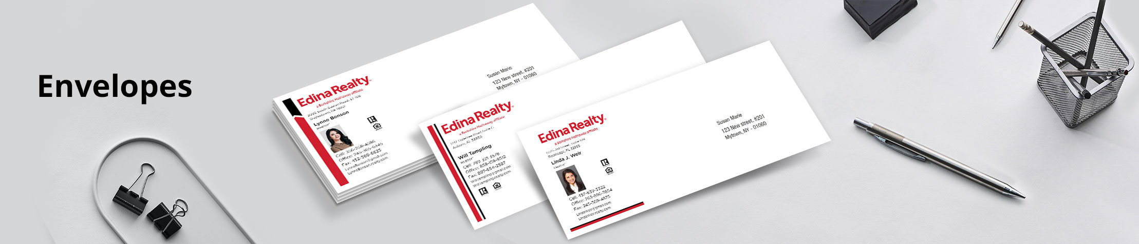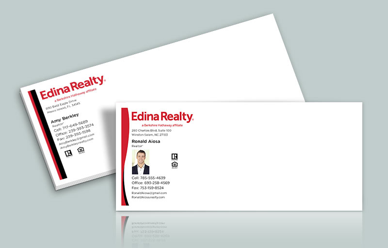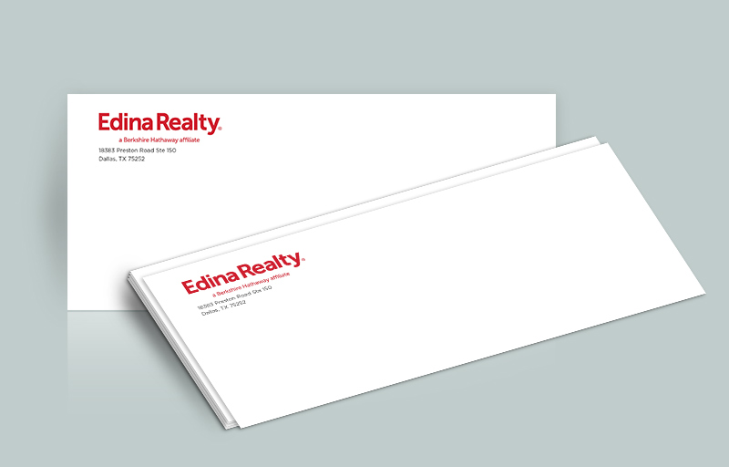 Banish the bland and enhance your reputation with these gorgeous, professional Edina Realty #10 envelopes. Custom design options will boost your brand recognition, save you time when addressing envelopes, and make a real impact on your mailing list. Choose from office envelopes with an easy-to-recognize Edina Realty logo design, or pick one of our striking agent envelope designs customized with your contact information, designations, and even a standard or silhouette photo. No matter what design you choose, you’ll get great products, affordable prices, and excellent customer service from BestPrintBuy.