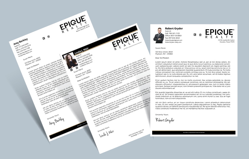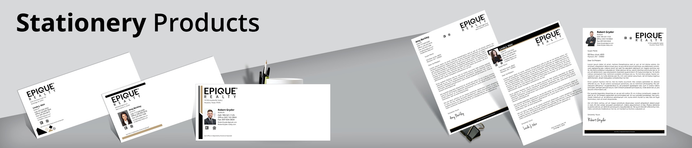 You’ll go to the head of the class with our real estate stationery! Use personalized letterhead and envelopes to present your Epique Realty real estate credentials in a classy, yet unassuming way to everyone you do business with. Order your supply of personalized real estate business stationery today, so you can start using it next week.