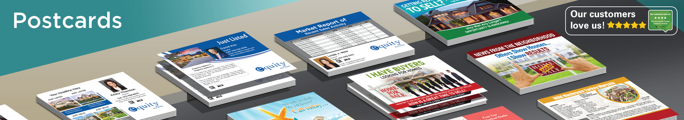 Business Cards, Postcards, Stationery, Name Badges, Door Hangers, Postcard Mailing (Direct Mail), Real Estate Signs, Presentation Folders, Real Estate Car Magnets, Promotional Products, EDDM and more.