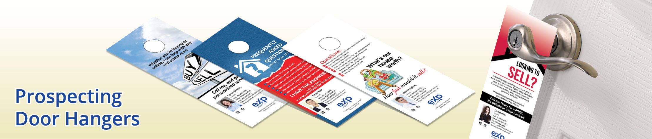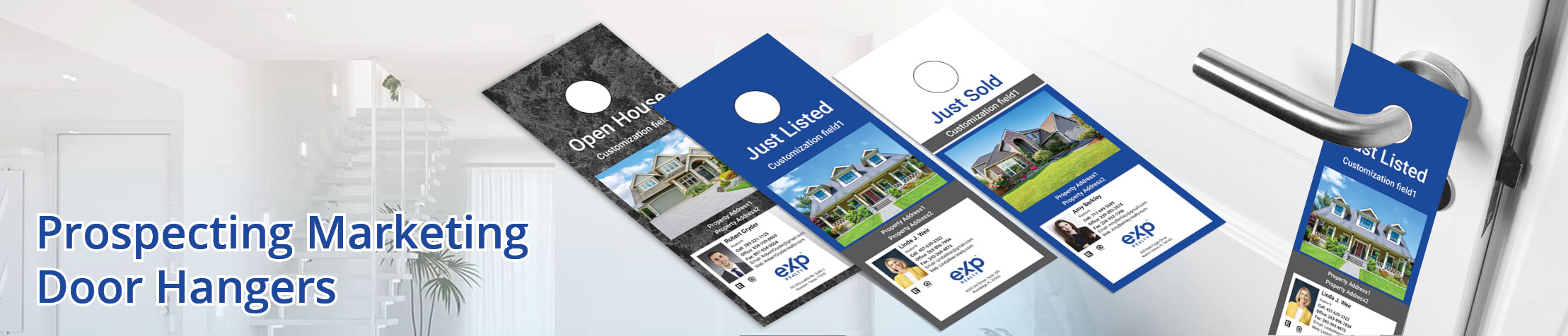 Old-school house calls! Use our real estate door hangers to introduce your realty services to prospects in your territory. We have door hangers for specific events, like open houses and for the holidays. Professionally printed, these eye-catching real estate door hangers get noticed! Add our door hangers to your next real estate marketing campaign. And it’s easy to customize them with photos and text in our design center. Our door hangers for real estate professionals are budget-friendly and full-color, with a trim size of 4.25 x 11 inches and a bleed size of 4.5 x 11.25 inches. Order your real estate door hangers today, and you’ll have them by next week!