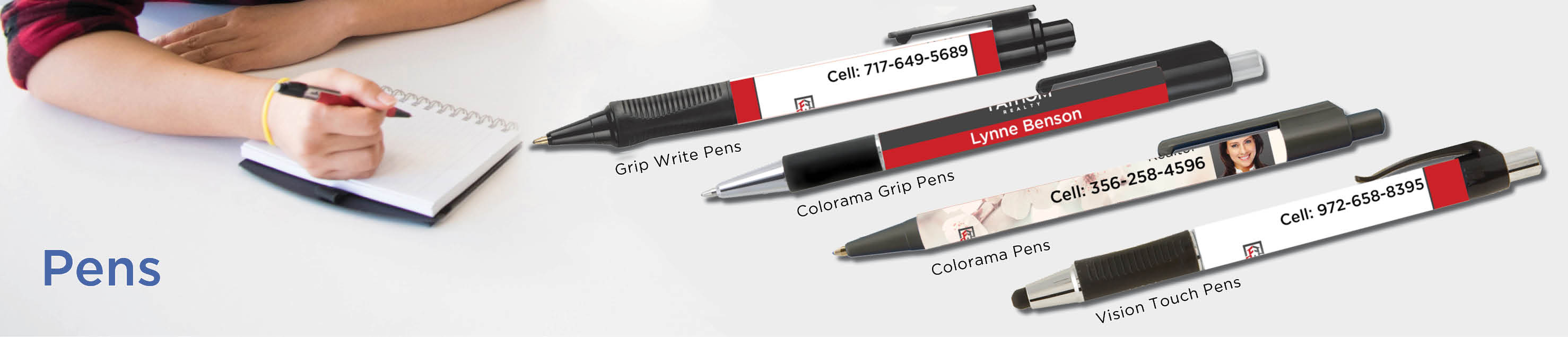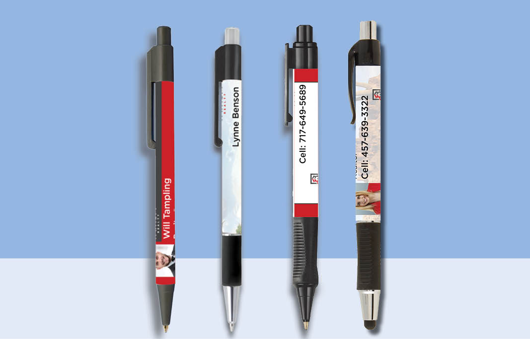 - ■ Custom pens present your contact info in a bold, easy-to-read manner