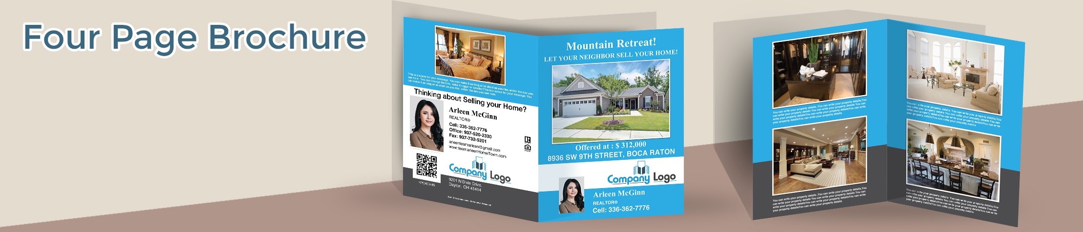 Nothing is going to look quite so polished as the full-color Independent Realtor real estate flyer of your latest listing, when you offer it to potential buyers. Every seller will appreciate seeing their own listing featured on a one-sided flyer, a two-sided flyer, or a big, beautiful four-page brochure!