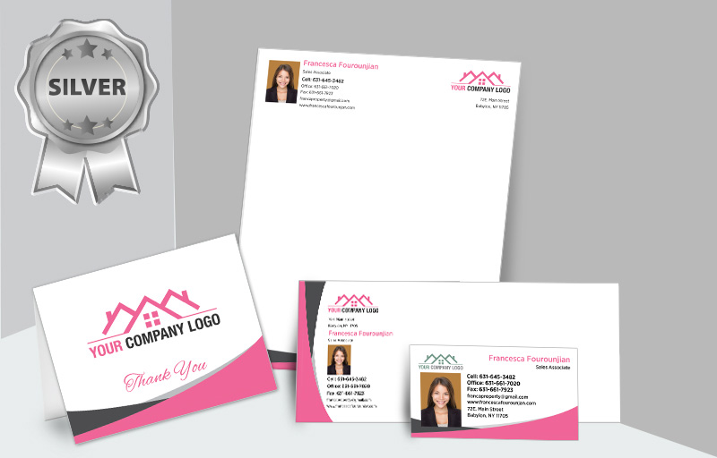 An agent silver starter kit has business cards, letterheads, #10 envelopes and standard folded note cards with envelopes. All you need to do is design your business card and we will craft your entire package for you.