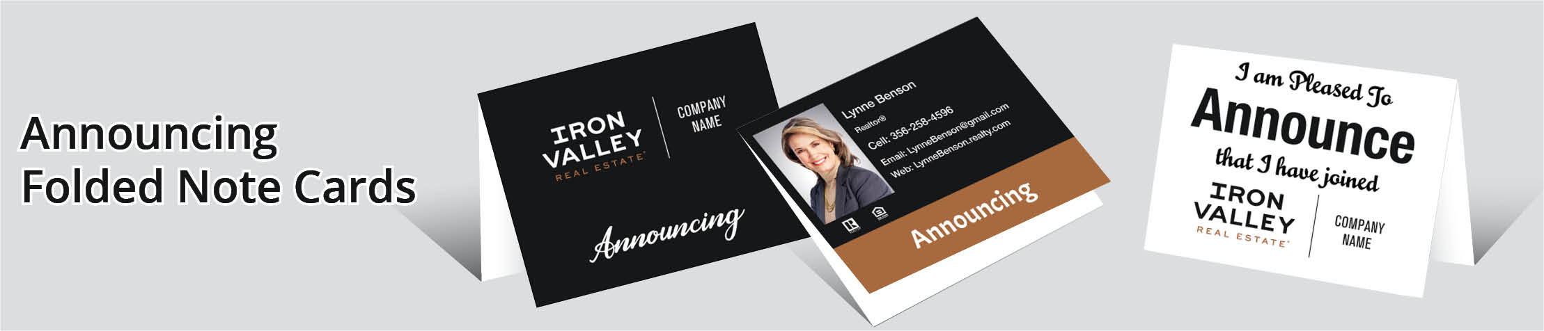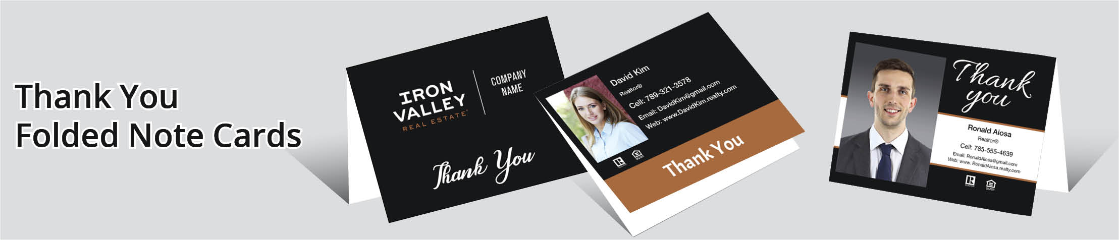Your mother had it right -- saying “Thank You” really makes a difference. With our Iron Valley International branded, folded note cards, it’s easy to say Thank you: Thank you for the listing, thank you for closing, thank you for the referral, thank you for the invitation to speak and many other opportunities that appear in your daily travels. Note cards are also great for personal promotion, announcements and jotting a quick hand-written note to a potential, existing or past client.