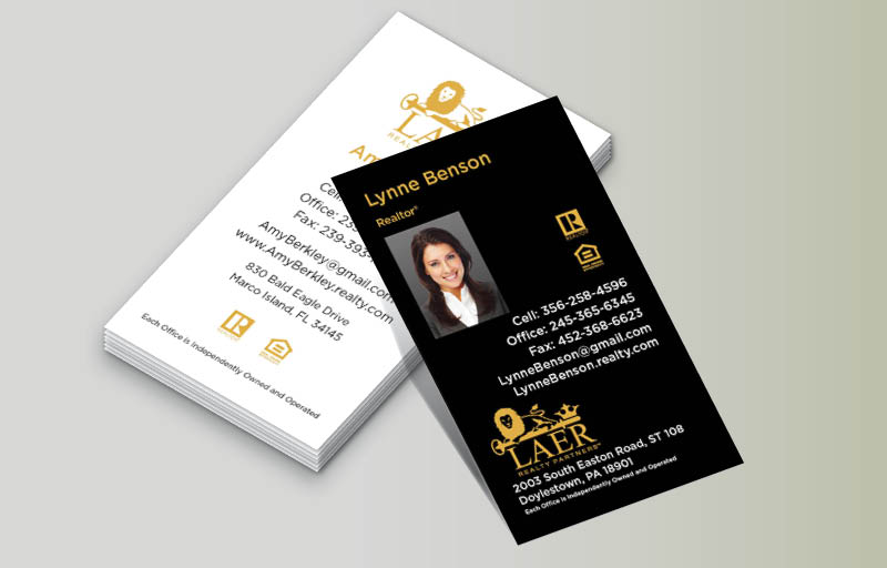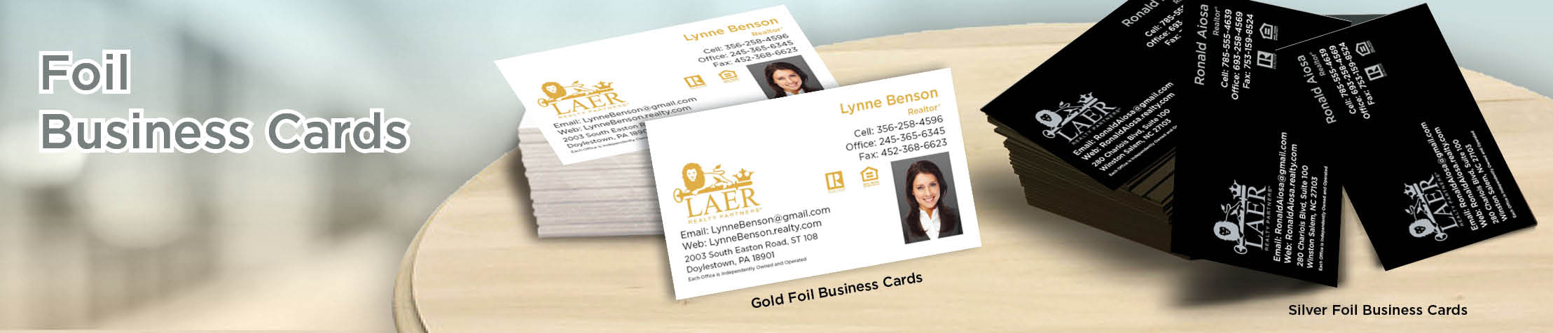 The quality of our real estate business cards compliments your status as a LAER Realty Partners real estate agent. Our full-color, premium high-gloss finish foil business cards are so rich and thick, you can actually feel the luxury! And we offer a quick turnaround time. Most of our real estate foil business card orders ship in 24-72 hours and arrive within 2-5 days (depending on the shipping option you choose).