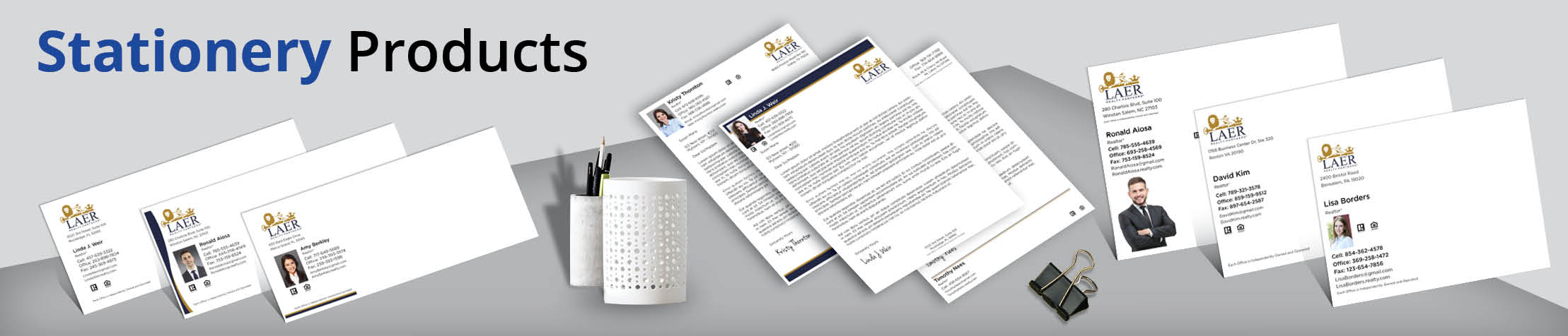 You’ll go to the head of the class with our real estate stationery! Use personalized letterhead and envelopes to present your LAER Realty Partners real estate credentials in a classy, yet unassuming way to everyone you do business with. Order your supply of personalized real estate business stationery today, so you can start using it next week.