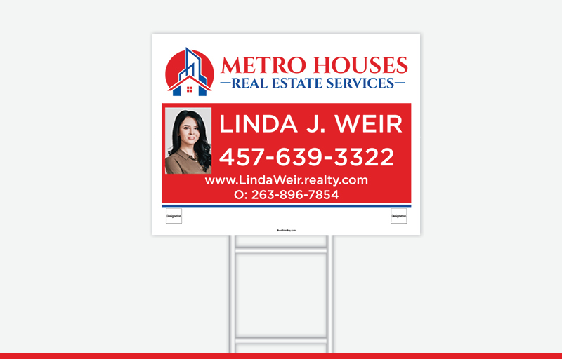 Nothing grabs attention like a Metro Houses Real Estate Services Real Estate yard sign. Whether it’s interested buyers driving around their dream neighborhoods or looky-loos stopping in to check out an open house, an eye-catching real estate yard sign is the best way to capture the attention of people who are in the market and ready to buy. Our simple designs and one-step process make BestPrintBuy.com the perfect choice for all your real estate marketing needs.