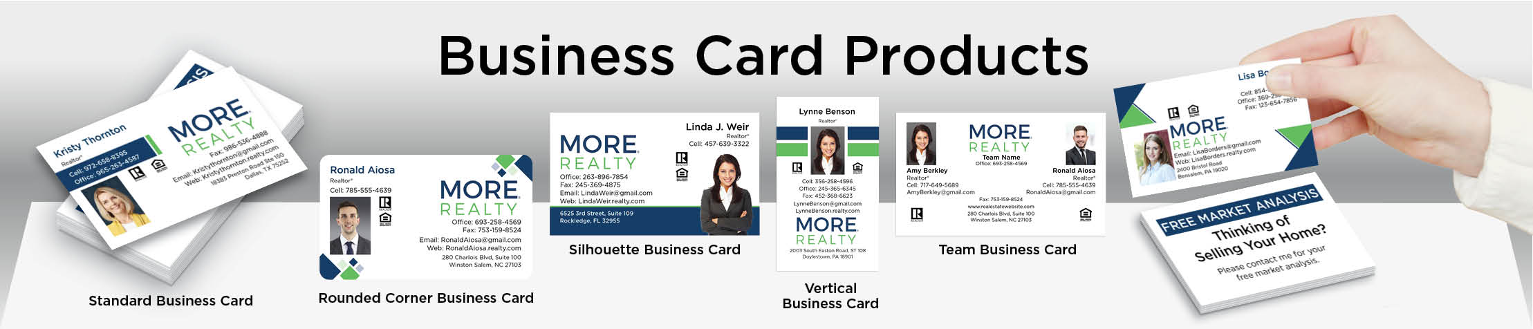 Make your mark with custom branded More Realty business cards that reflect your brand and enhance your image. We offer a wide variety of styles, designs, and templates, allowing you to design a business card that appeals to your ideal client. Whether you’re looking for luxury branding, modern designs, unique style elements, or a classic minimalist card, BestPrintBuy.com has the quality and value you look for in a More Realty real estate business card.