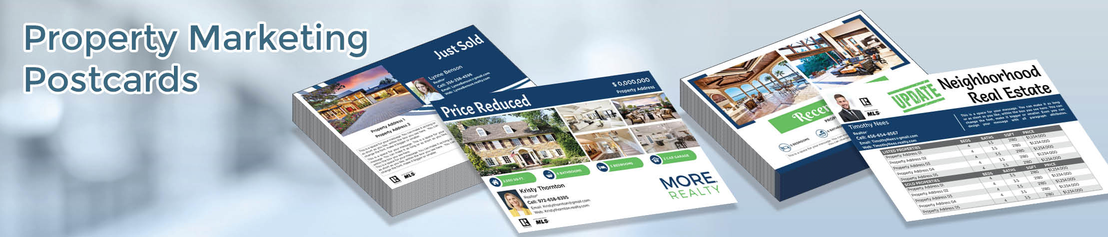 Need postcards for your next direct mail campaign? We have over fifty categories of branded designs for our More Realty International real estate agents to use! Our postcards are printed on heavy 130 pound stock paper with a high-quality UV coating. (None of the flimsy stuff for our clients!) Select from standard size (4.5” x 5.5”) or make a bigger splash with our jumbo (5.5” x 8.5”) postcards. Craft your own custom card in minutes using our online design center’s vast library of custom templates and graphics with your own images and text.