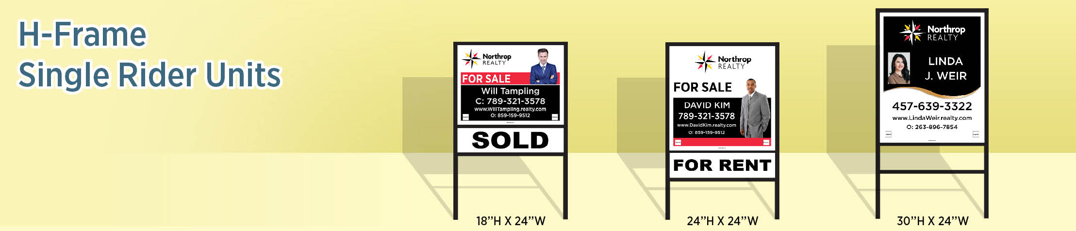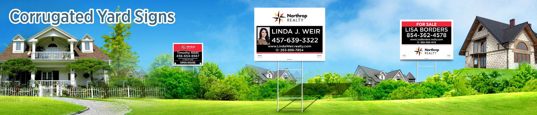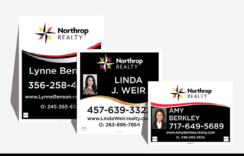 Nothing grabs attention like a Northrop Realty Real Estate yard sign. Whether it’s interested buyers driving around their dream neighborhoods or looky-loos stopping in to check out an open house, an eye-catching real estate yard sign is the best way to capture the attention of people who are in the market and ready to buy. Our simple designs and one-step process make BestPrintBuy.com the perfect choice for all your real estate marketing needs.