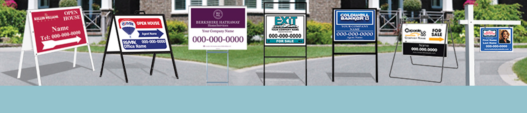 H-frame options permit single or double riders for "under contract" "just sold" or other additional signage information on a listing. A-Frame options offer flexibility for open houses, events, and tours. And light-weight, easy-to-use corrugated signs are the best low cost option for the agent on a tight budget who still wants a personalized, professional sign option. BestPrintBuy.com also offers sign posts, wire stakes, nuts and bolts, rider hanging clips, and zip ties... literally everything you need!