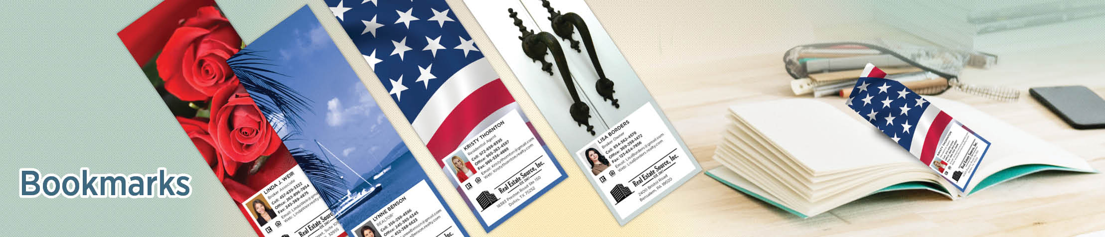 Need excellent, but inexpensive, promotional products delivered quickly? Want them to be something that people will keep and use? Try our beautiful Real Estate Source Inc real estate bookmarks! Soft-sell your contact information on our UV-coated, glossy, full-color, heavy-weight bookmarks and succeed in becoming a part of your potential clients’ everyday life... every time they pick up their favorite book! (What a nice association.)