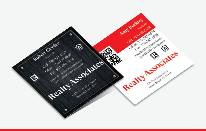 If you want to stand out in the real estate world, choose a business card that’s as unique as you are. Our stylish square Realty Associates business cards come in an array of style options, from bold solid-color cards to options with photos, QR codes, and custom two-sided cards with striking silhouettes. Never get lost in the crowd again with square Realty Associates business cards from BestPrintBuy.