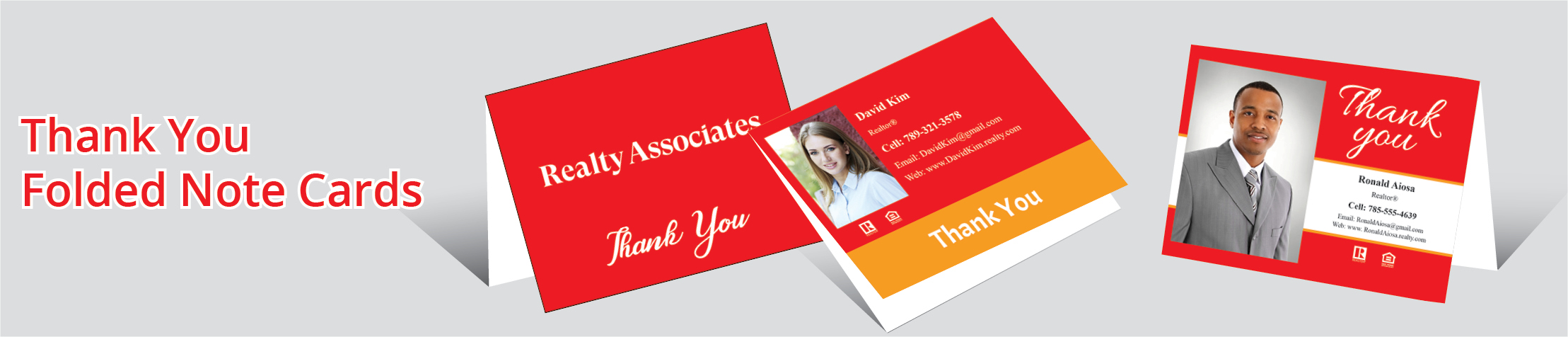 Your mother had it right -- saying “Thank You” really makes a difference. With our Realty Associates International branded, folded note cards, it’s easy to say Thank you: Thank you for the listing, thank you for closing, thank you for the referral, thank you for the invitation to speak and many other opportunities that appear in your daily travels. Note cards are also great for personal promotion, announcements and jotting a quick hand-written note to a potential, existing or past client.