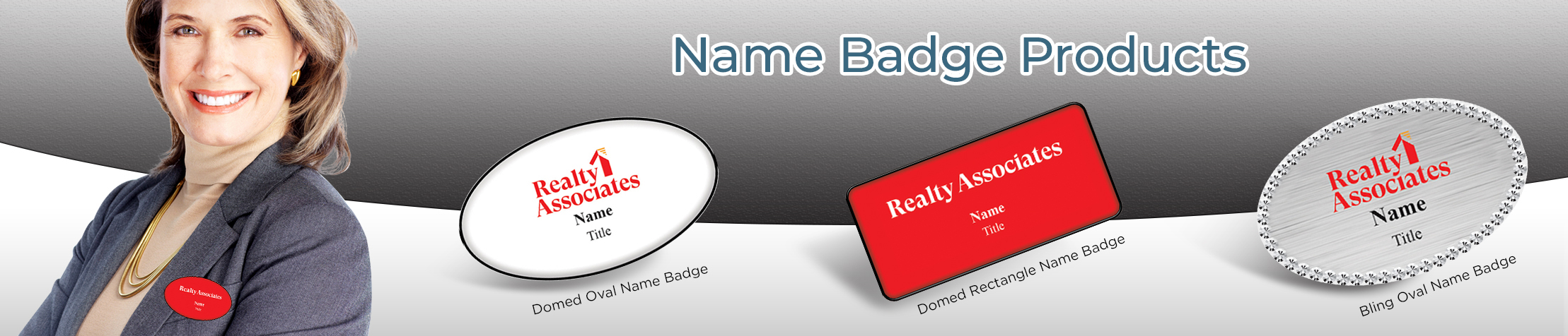 Agents looking for high-quality Realty Associates name badges have multiple options to choose from, including our domed oval- and rectangular-shaped ABS plastic badges, which are finished with scratch-proof polyurethane to keep them wearing beautifully for years to come, as well as our metallic name badge, which is also available with a full-color print -- and our prices can't be beat! Choose your style and select from a traditional pin backing, a magnetic fastener, a swivel pin or a military-style tack fastener. Your Realty Associates name badge comes in a variety of design options for each shape, and you can order more than one to change them with your mood!