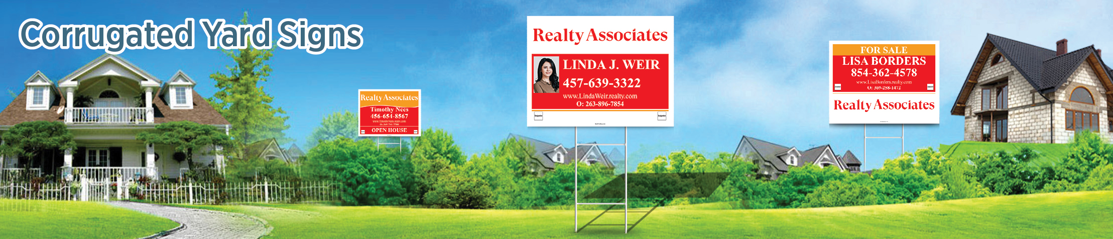 Nothing grabs attention like a Realty Associates Real Estate yard sign. Whether it’s interested buyers driving around their dream neighborhoods or looky-loos stopping in to check out an open house, an eye-catching real estate yard sign is the best way to capture the attention of people who are in the market and ready to buy. Our simple designs and one-step process make BestPrintBuy.com the perfect choice for all your real estate marketing needs.