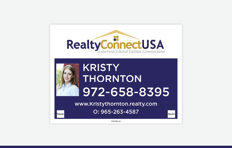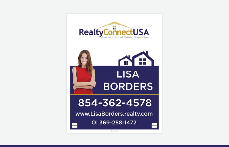 Nothing grabs attention like a Realty Connect USA Real Estate yard sign. Whether it’s interested buyers driving around their dream neighborhoods or looky-loos stopping in to check out an open house, an eye-catching real estate yard sign is the best way to capture the attention of people who are in the market and ready to buy. Our simple designs and one-step process make BestPrintBuy.com the perfect choice for all your real estate marketing needs.