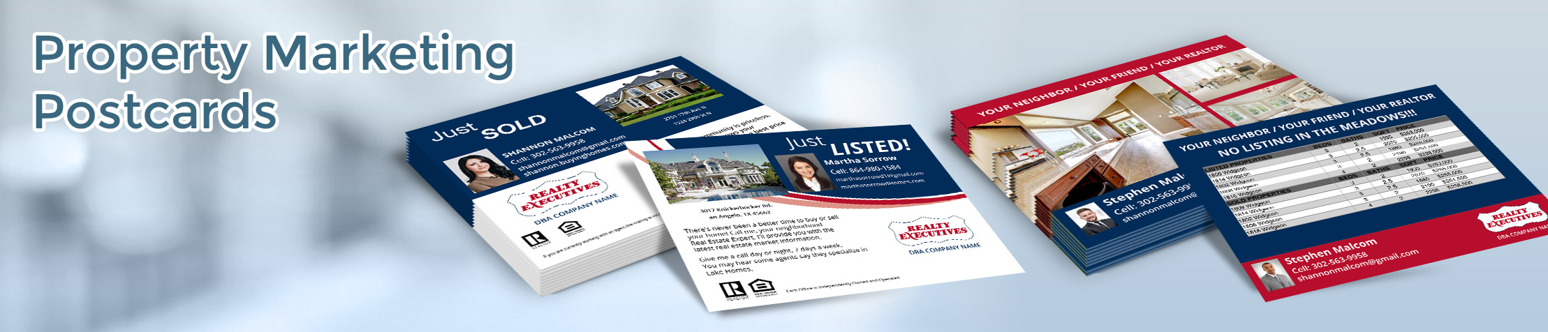 Need postcards for your next direct mail campaign? We have over fifty categories of branded designs for our Realty Executives International real estate agents to use! Our postcards are printed on heavy 130 pound stock paper with a high-quality UV coating. (None of the flimsy stuff for our clients!) Select from standard size (4.5” x 5.5”) or make a bigger splash with our jumbo (5.5” x 8.5”) postcards. Craft your own custom card in minutes using our online design center’s vast library of custom templates and graphics with your own images and text.