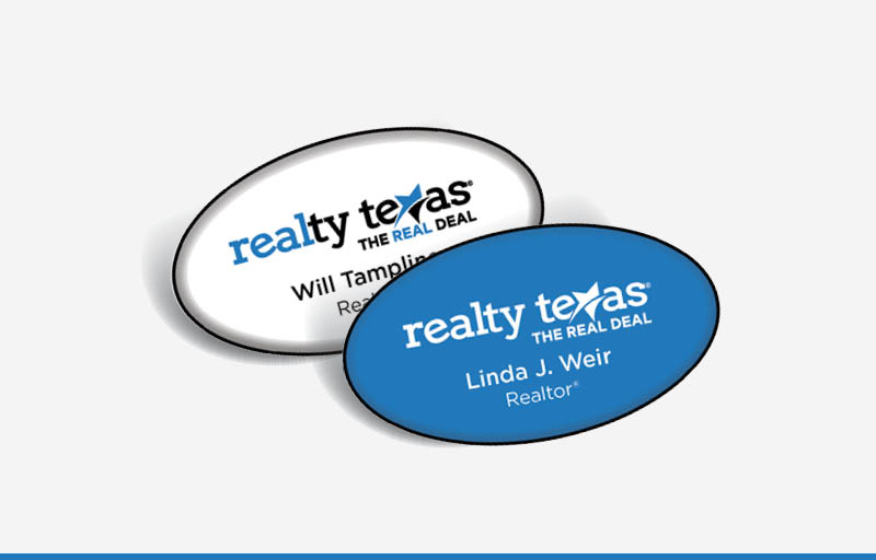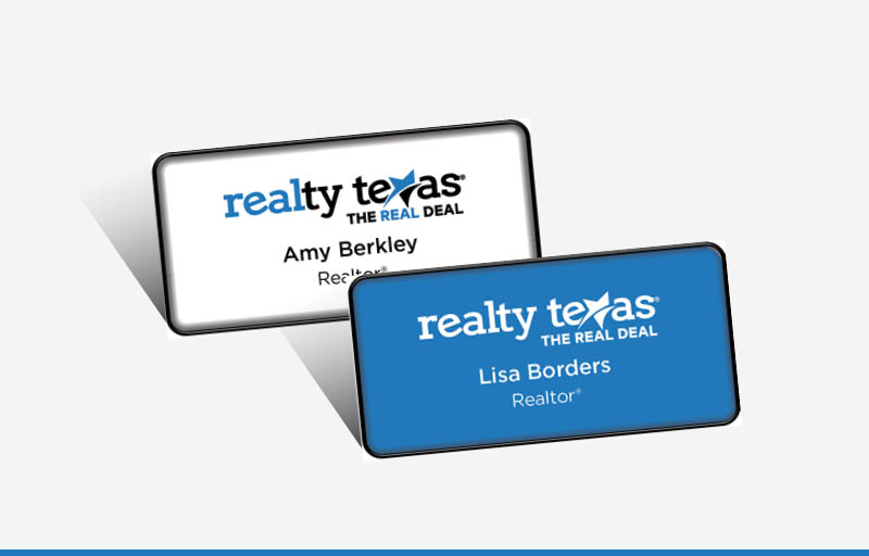 A Realty Texas name badge from BestPrintBuy does double duty at every encounter. Not only does it help provide name recognition (and an easy introduction point at networking events), it also reassures prospects and clients that you’re a dedicated professional with expertise they can trust. Our custom Realty Texas name tags offer great value in several durable, eye-catching designs that perfectly reflect your brand.