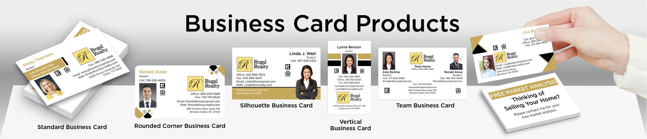 Make your mark with custom branded Regal Realty business cards that reflect your brand and enhance your image. Best Print Buy offers a wide variety of styles, designs, and templates, allowing you to design a business card that appeals to your ideal client. Whether you’re looking for luxury branding, modern designs, unique style elements, or a classic minimalist card, Bestprintbuy.com has the quality and value you look for in a Regal Realty real estate business card.