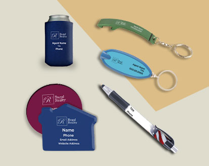 Business Cards, Postcards, Stationery, Name Badges, Door Hangers, Postcard Mailing (Direct Mail), Real Estate Signs, Presentation Folders, Real Estate Car Magnets, Promotional Products, EDDM and more.