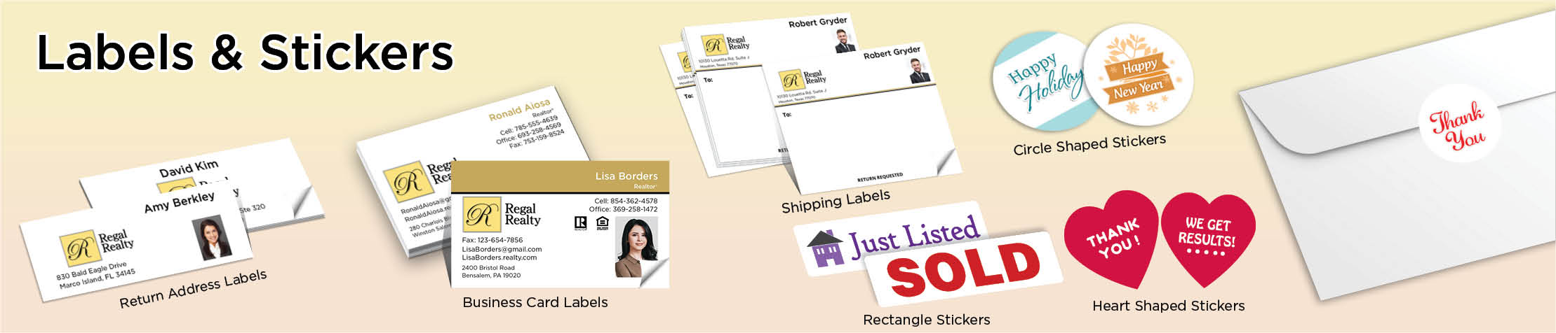 Explore our range of Regal Realty stickers, Regal Realty return address labels and more by clicking the links below:
