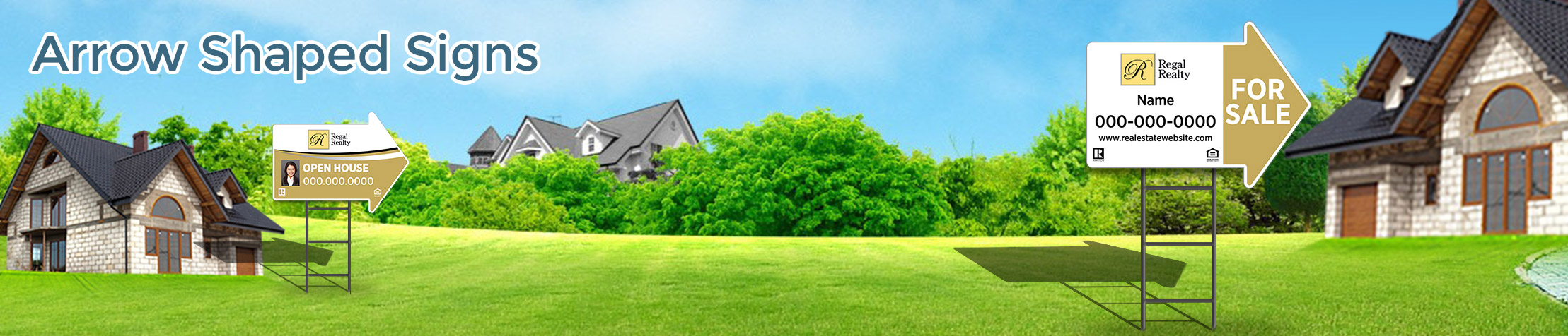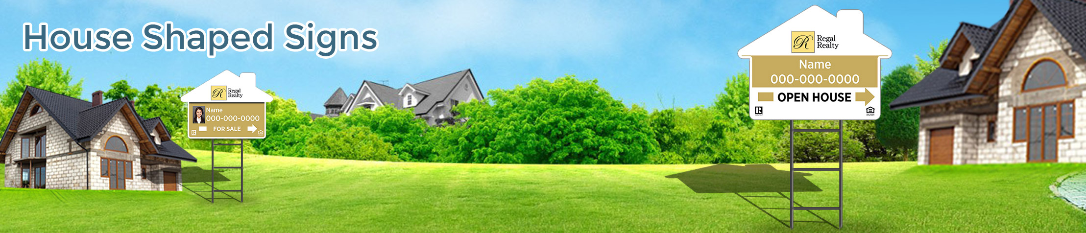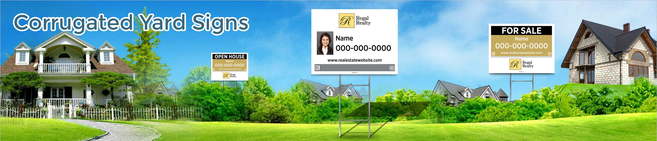 Nothing grabs attention like a Regal Realty Real Estate yard sign. Whether it’s interested buyers driving around their dream neighborhoods or looky-loos stopping in to check out an open house, an eye-catching real estate yard sign is the best way to capture the attention of people who are in the market and ready to buy. Our simple designs and one-step process make BestPrintBuy.com the perfect choice for all your real estate marketing needs.