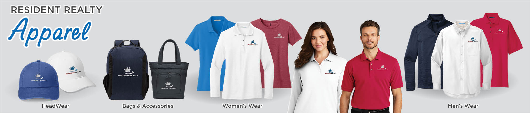 BestPrintBuy supplies a complete range of products for Resident Realty real estate promotions. Contact us for more information about our real estate marketing products, including business cards, promotional gifts and Resident Realty real estate apparel.