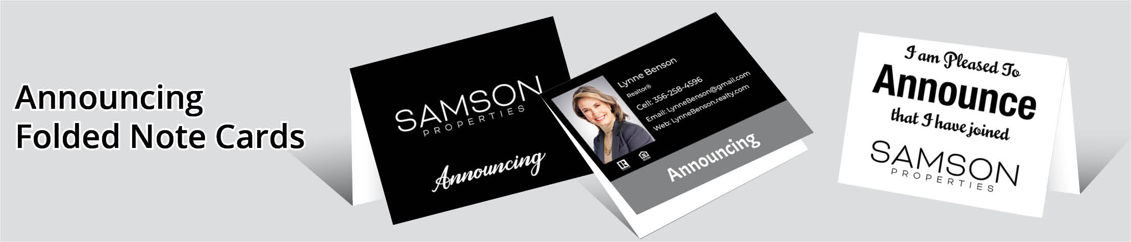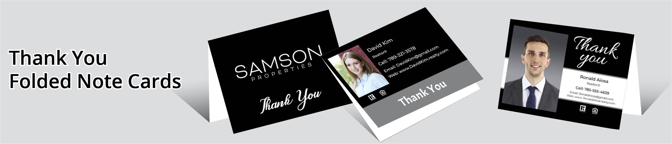 Your mother had it right -- saying “Thank You” really makes a difference. With our Samson Properties International branded, folded note cards, it’s easy to say Thank you: Thank you for the listing, thank you for closing, thank you for the referral, thank you for the invitation to speak and many other opportunities that appear in your daily travels. Note cards are also great for personal promotion, announcements and jotting a quick hand-written note to a potential, existing or past client.