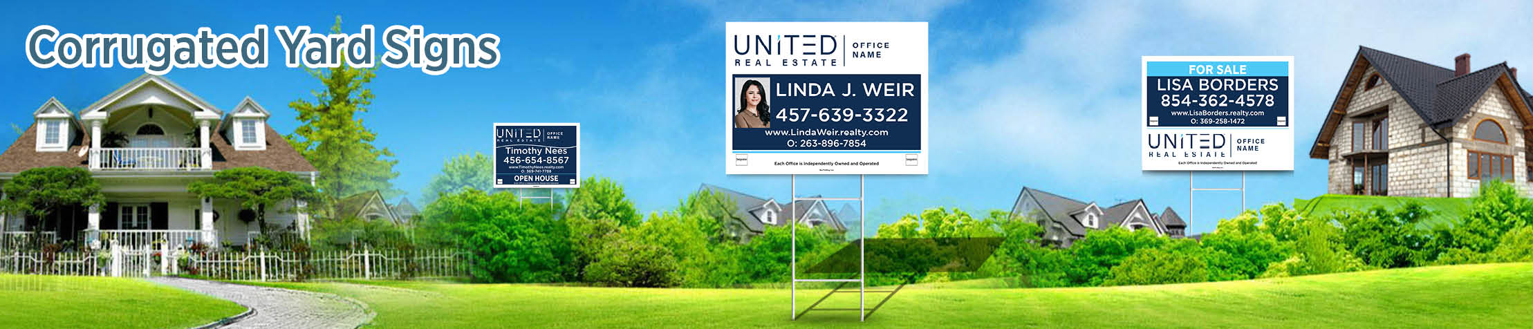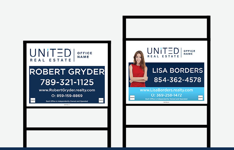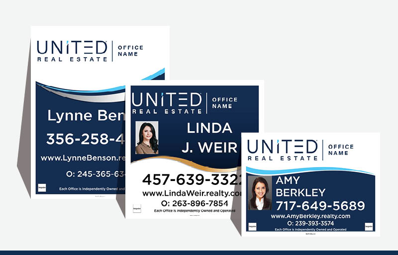 Nothing grabs attention like a United Real Estate Real Estate yard sign. Whether it’s interested buyers driving around their dream neighborhoods or looky-loos stopping in to check out an open house, an eye-catching real estate yard sign is the best way to capture the attention of people who are in the market and ready to buy. Our simple designs and one-step process make BestPrintBuy.com the perfect choice for all your real estate marketing needs.